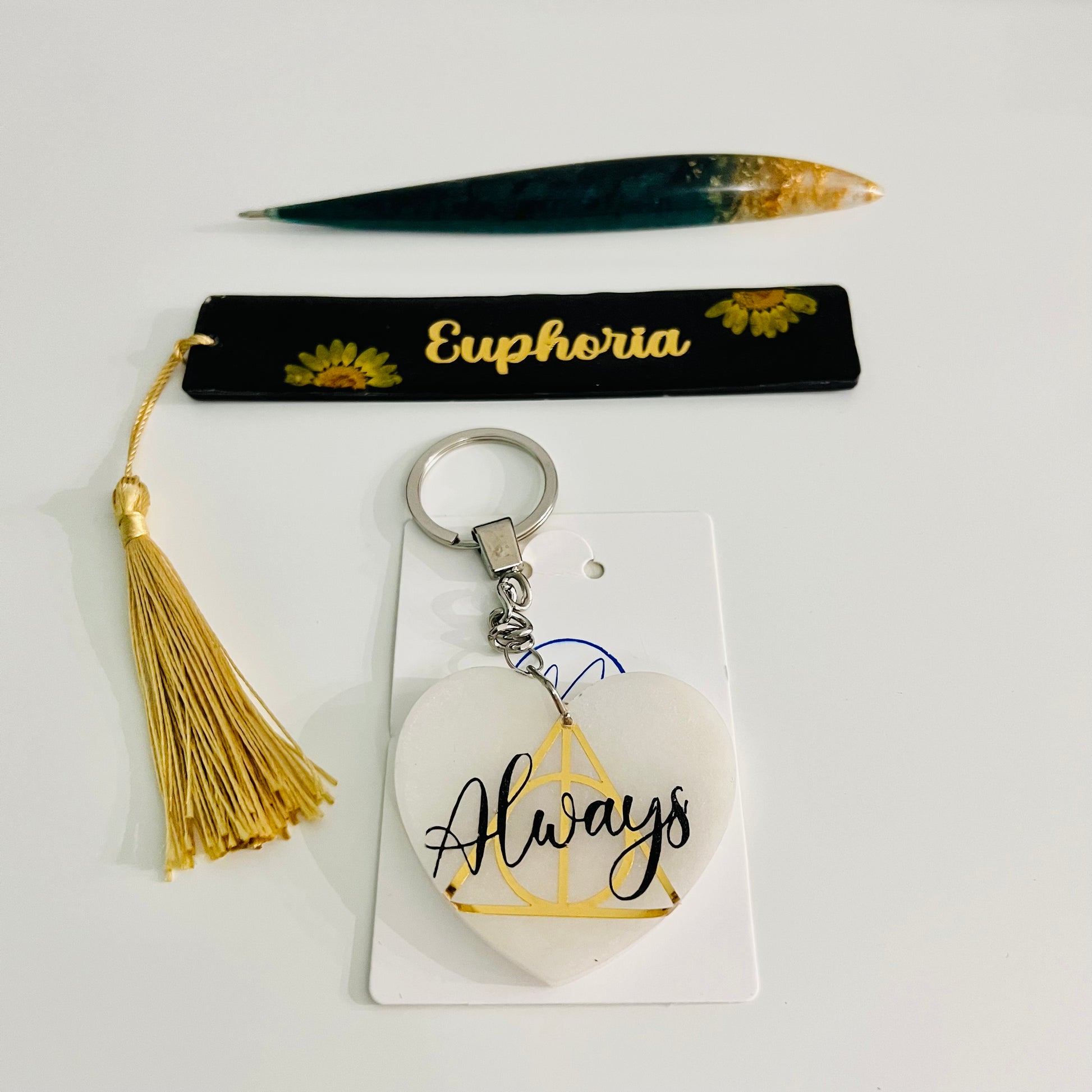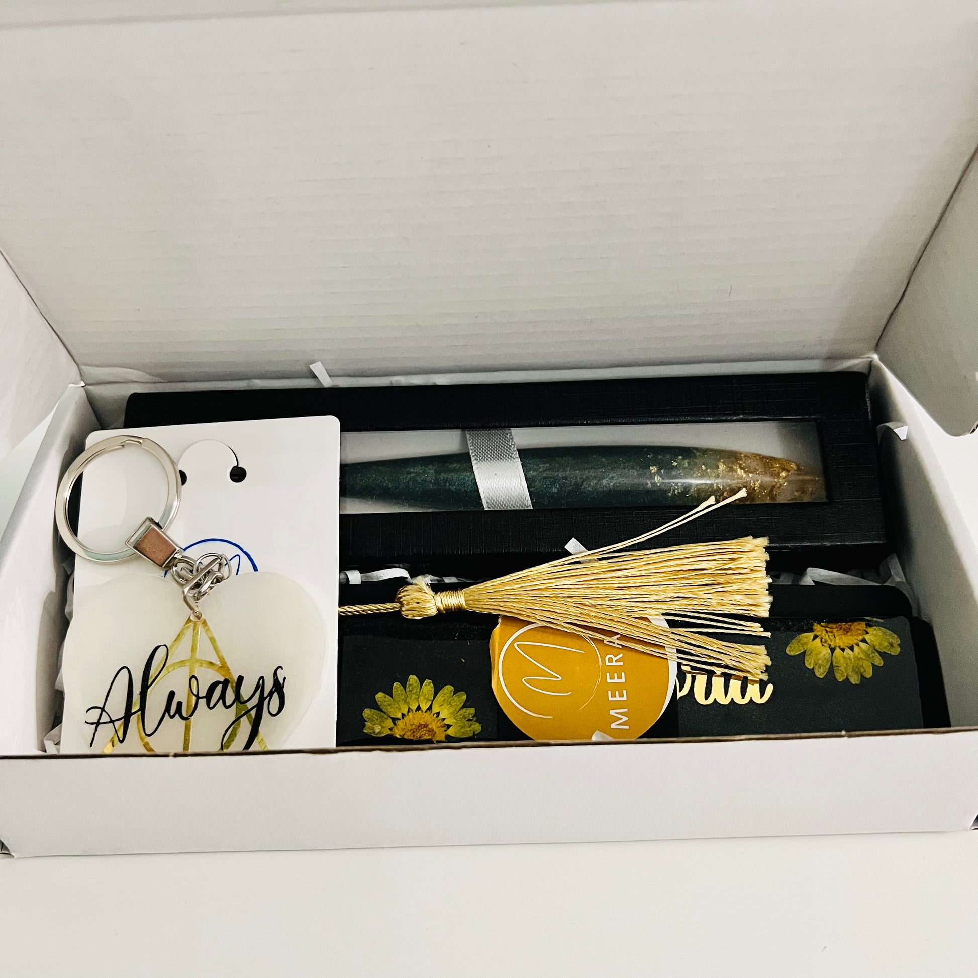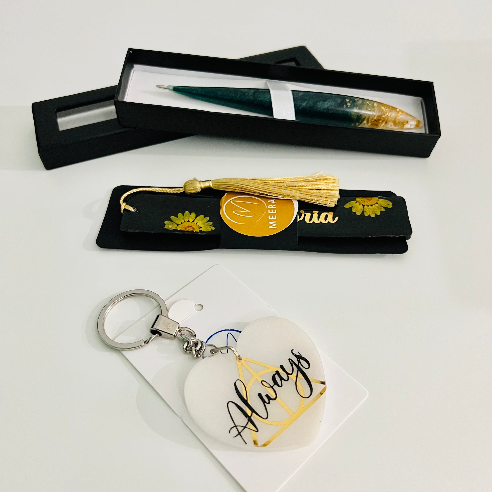 This gift set comes with an intricate design keychain, beautiful designed pen and a state of art bookmark.