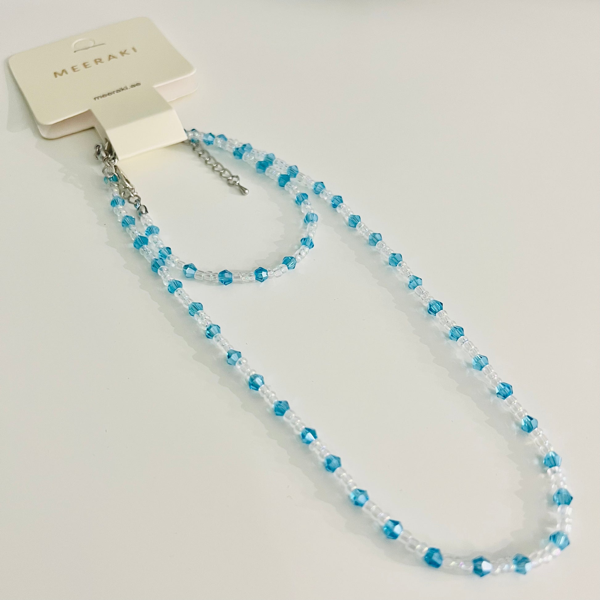 Adorn yourself with this sophisticated light blue and white crystal necklace and bracelet set.