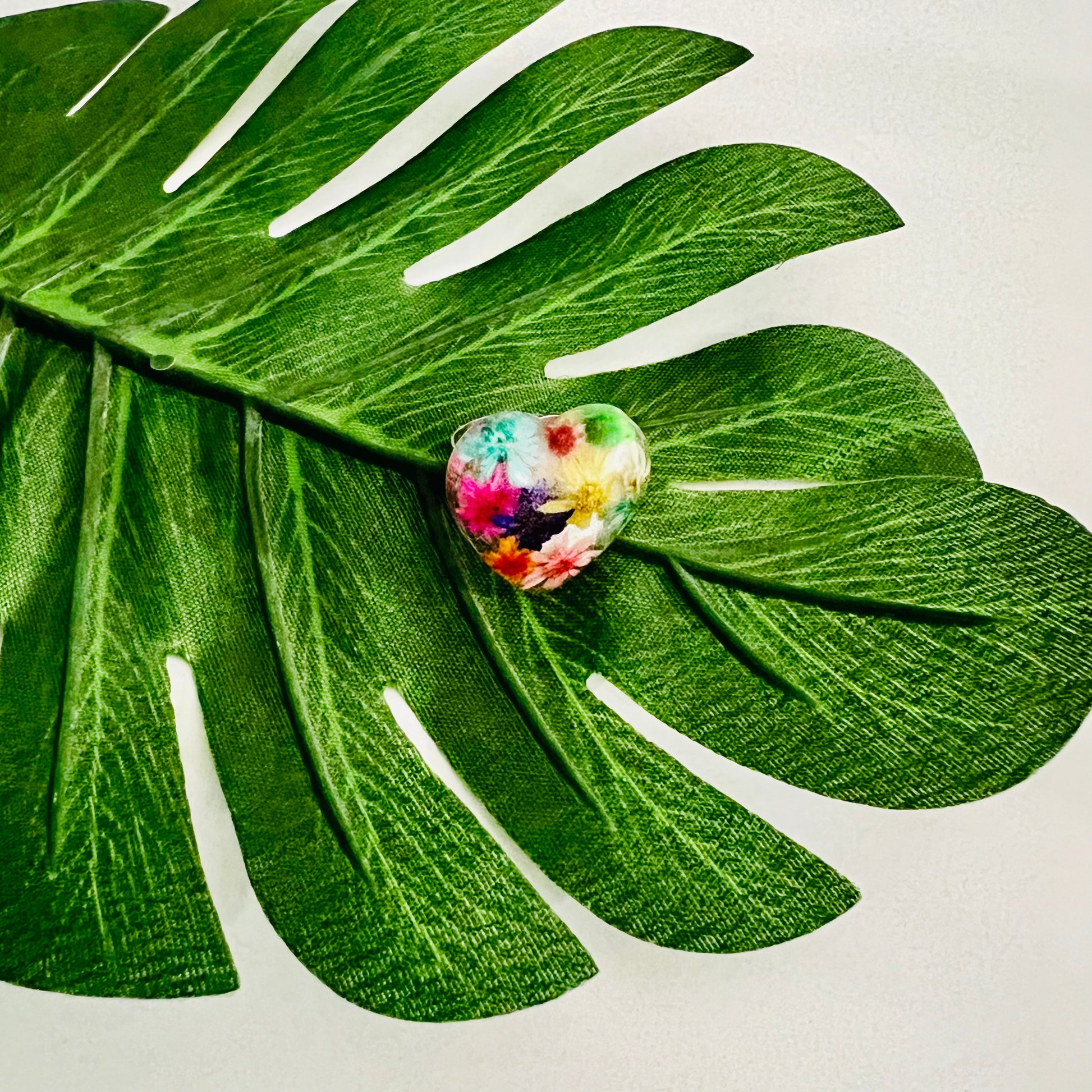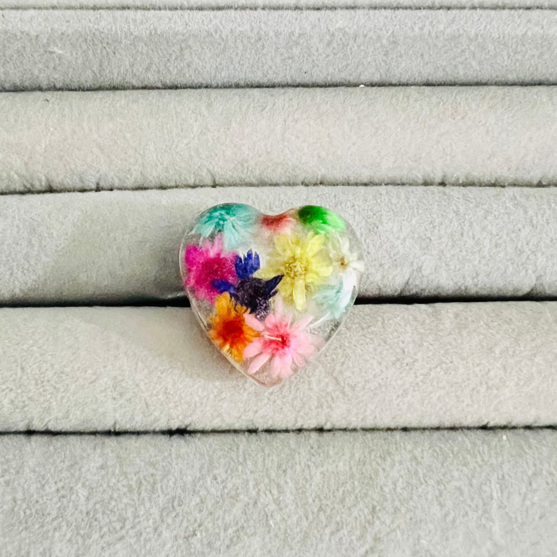 Heart ring is an extensive array of colors, from bold and vibrant hues to more subtle and earthy tones. Artisans has carefully molded and shaped the resin to form unique pattern creating a visually appealing and personalized accessory.