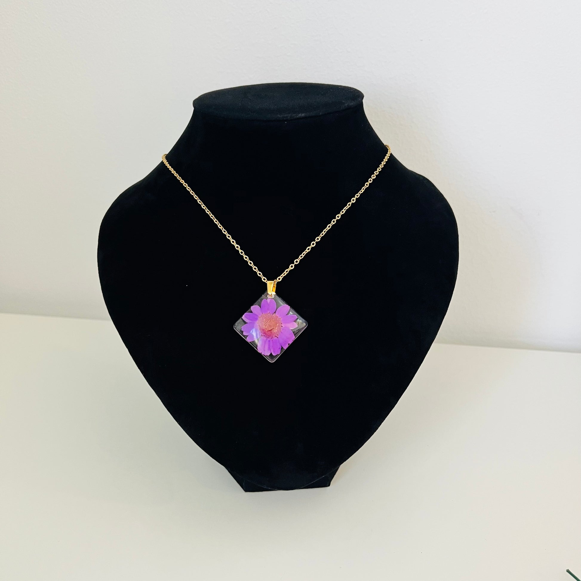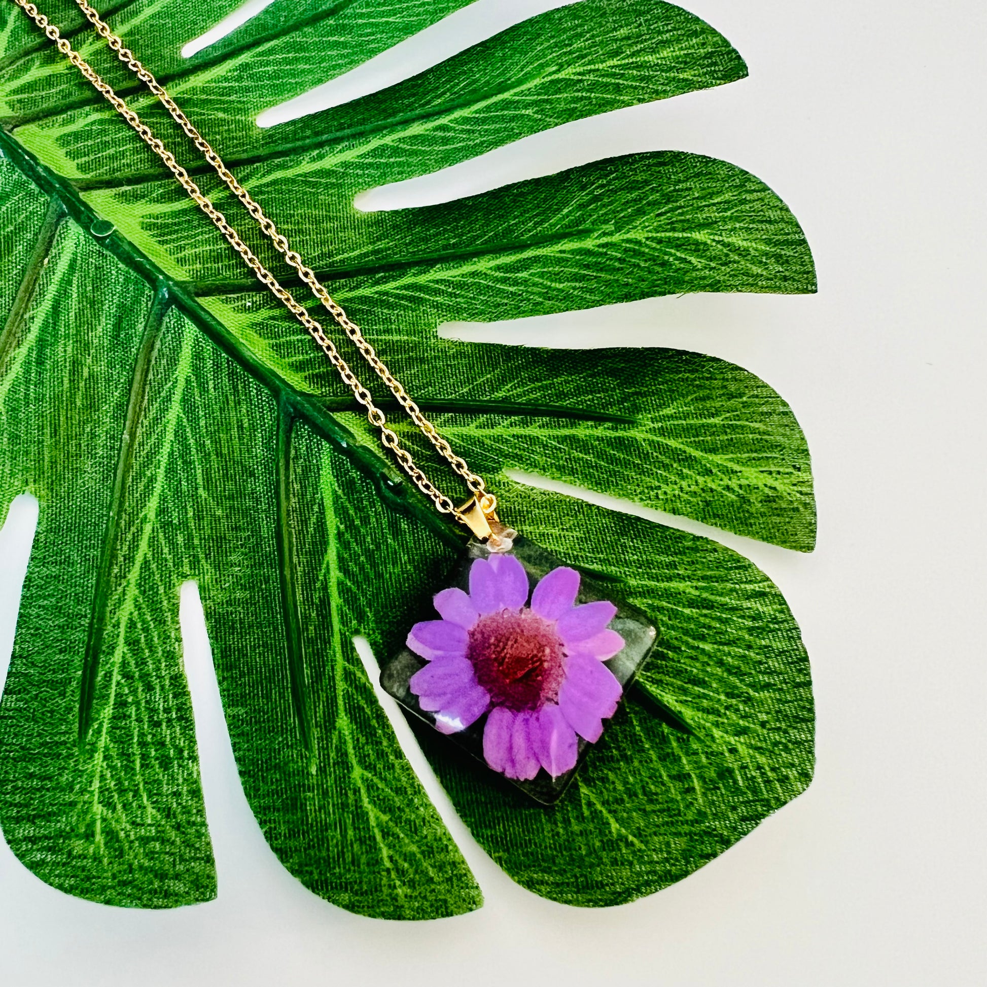 Immerse yourself in the elegance of our purple floral dried resin pendants. Each piece is a harmonious blend of real dried purple florals suspended in crystal-clear resin, creating a collection of enchanting accessories that capture the beauty of nature.