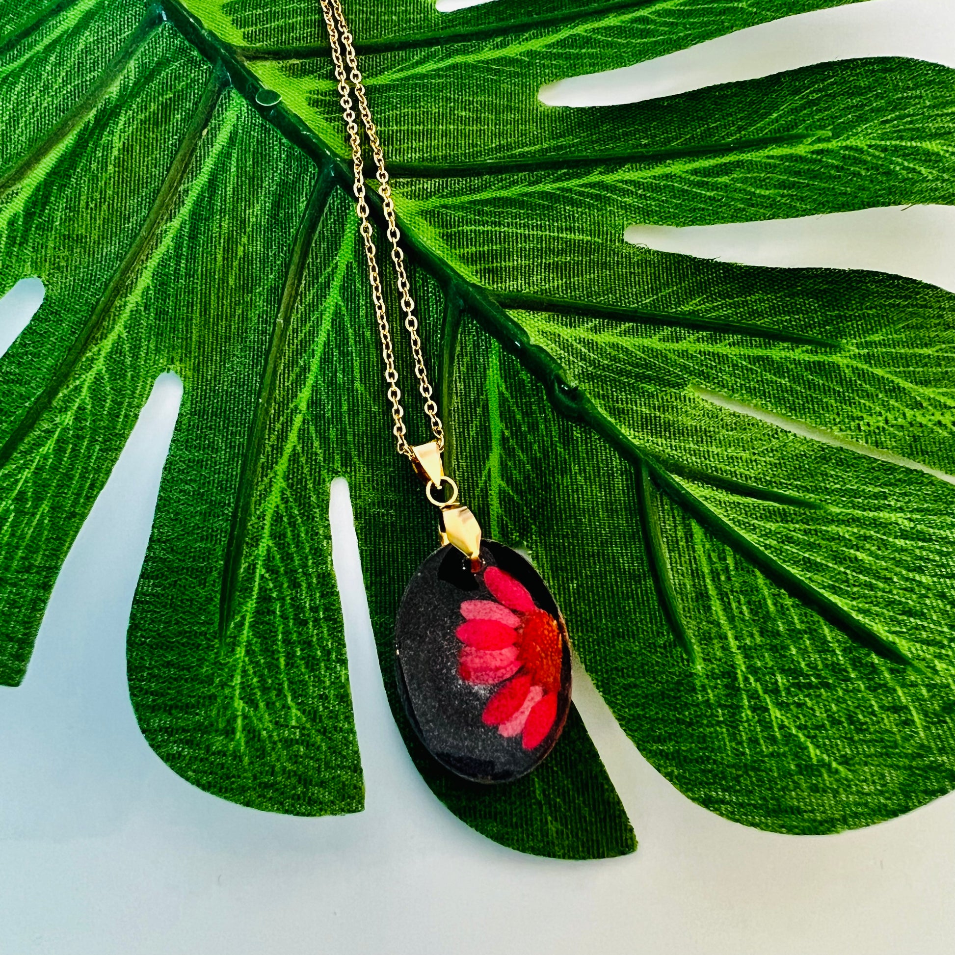 Adorn yourself with the everlasting charm of nature with our Real Dried Red Daisy Flower Resin Pendants. Each pendant is a wearable piece of art, capturing the vibrant allure of red daisies in a timeless and elegant design.
