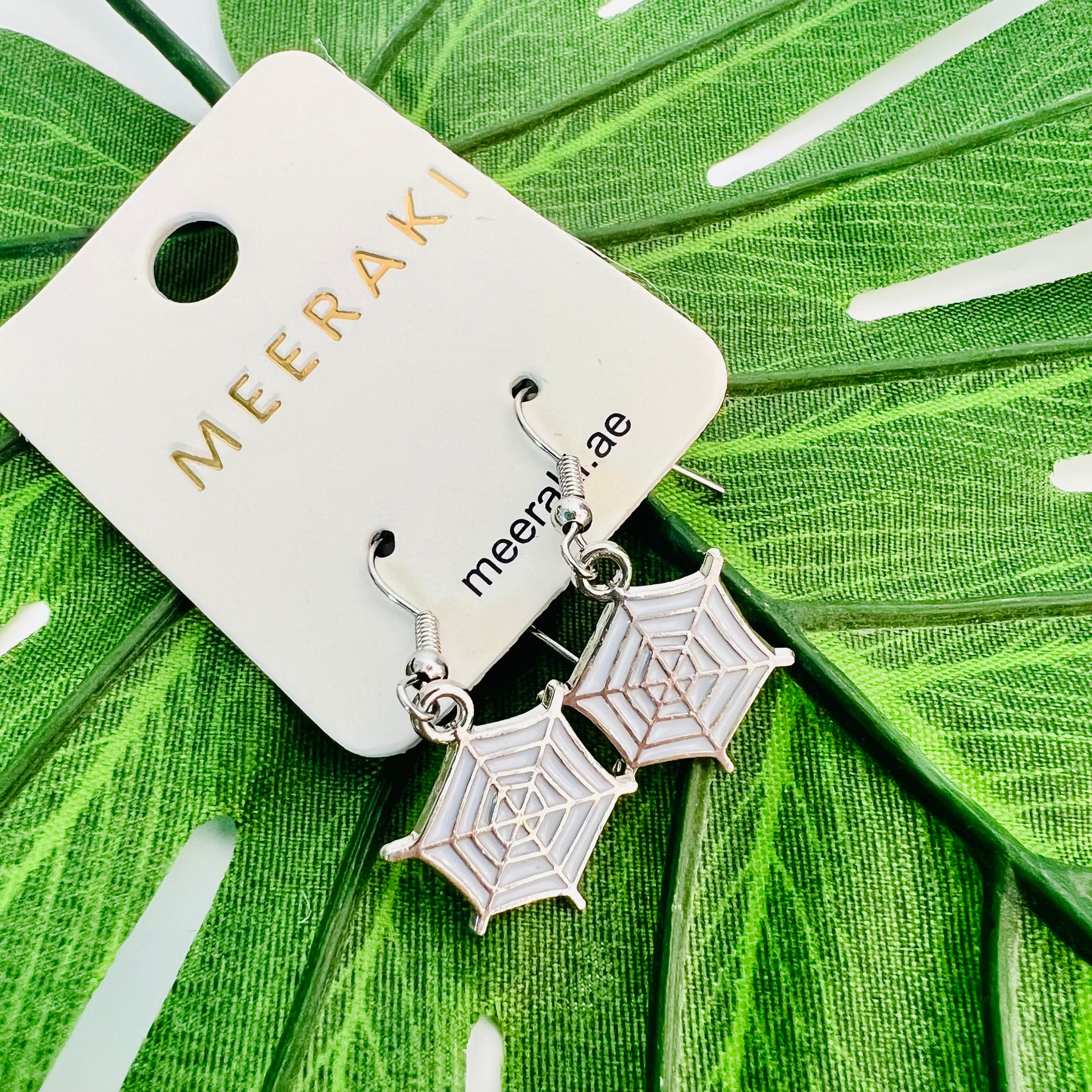 These earrings are a visual delight, inspired by the delicate beauty of a spider's web, and crafted to adorn your ears with timeless sophistication.